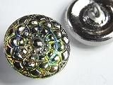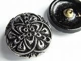Pt34090  【チェコガラスボタン】模様いろいろ・デザイン#4090 ・黒に銀・小(2.25cm)  300円