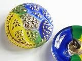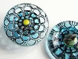 Pt49560  【チェコガラスボタン】模様いろいろ・デザイン#9560 ・黄、青に金・小粒(1.80cm)  200円