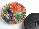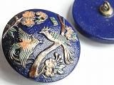 BD100333  【チェコガラスボタン】花鳥風月・紺に緑とピンク・中(2.70cm)  400円