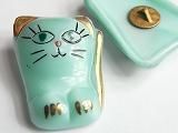 CT030653  【チェコガラスボタン】招き猫・ミント色に金・中(2.78x2.23cm)  400円