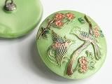 BD100345  【チェコガラスボタン】花鳥風月・黄緑に緑とピンク・中(2.70cm)  400円