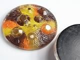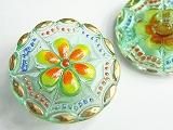 Pt05845  【チェコガラスボタン】模様いろいろ・透明緑に黄、オレンジ、金・中(2.70cm)  400円