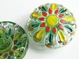 Pt63060  【チェコ・ガラスカボション】模様いろいろ・デザイン#3060 ・赤黄緑に金・大(3.15cm)  450円