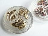 Pt56080  【チェコガラス・カボション】模様いろいろ・デザイン#6080・無色透明に金・小粒(1.80cm)  200円