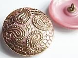 Pt00605  【チェコガラスボタン】模様いろいろ・四個のペイズリー(ピンクに金)・中(2.70cm)  400円