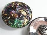 PtWF0016  【チェコガラスボタン】模様(渦巻の羽)・緑紫に銀・中(2.70cm)  400円