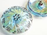 Pt06535  【チェコガラスボタン】模様いろいろ(柔らかい八弁の花)・紫掛かった水色に銀・中(2.70cm)  400円
