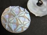 PtWF0380  【チェコガラスボタン】模様(渦巻の羽)・白に金・中(2.70cm)  400円
