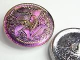 PtGG038006  【チェコガラスボタン】模様(ゴージャス)・虹色・赤紫・特大(3.60cm)  500円