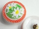 FLsfl02415  【チェコガラス・カボション】花いろいろ・ひまわり・杏色に金・小粒(1.80cm)  200円
