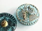 FLsfl03441  【チェコガラス・ボタン】花いろいろ・ひまわり・ピーコックグリーンに金・小粒(1.80cm)  200円