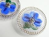 FLclv04032  【チェコガラスボタン】花いろいろ・クローバ・無色透明に青・中(2.70cm)  400円