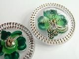 FLclv04049  【チェコガラスボタン】花いろいろ・クローバ・無色透明に緑・中(2.70cm)  400円
