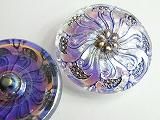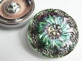 Pt06518  【チェコガラスボタン】模様いろいろ(柔らかい八弁の花)・緑紫に銀・中(2.70cm)  400円
