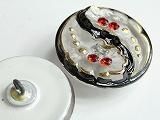 PtGG136390  【チェコガラスボタン】模様(ゴージャス)・周囲に八つの扇・黒に金・大(3.15cm)  450円
