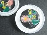 Pt38818  【チェコガラスボタン】模様いろいろ・中央に花一輪(緑紫)・小(2.25cm)  300円