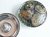 Pt00618  【チェコガラスボタン】模様いろいろ・四個のペイズリー(緑紫に金)・中(2.70cm)  400円