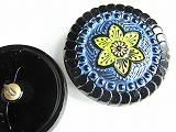 Pt61990  【チェコガラスボタン】模様いろいろ・中央に六弁の花 ・黒に黄青・大(3.15cm)  450円