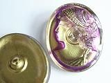 Sp1980  【チェコガラスボタン】特殊な形・乙女の横顔・楕円(縦3.30x横2.67cm)・金地に紫の縁取り  500円