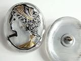 Sp1985  【チェコガラスボタン】特殊な形・乙女の横顔・楕円(縦3.30x横2.67cm)・灰地に黒の縁取り  500円