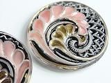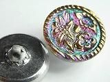 Pt01580  【チェコガラスボタン】模様いろいろ・巻いた若芽(無色虹色に金)・中(27.0cm)  400円
