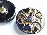 BD053315  【チェコガラスボタン】小鳥とハート・メタリック紫に金の縁取り・小(2.25cm)  300円