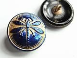 DF4031  【チェコガラスボタン】蜻蛉・青メタリック・金の縁取り・小粒(1.80cm)  230円