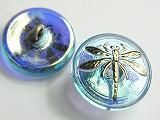 DF6830  【チェコガラス・カボション】蜻蛉・青・金翅・大(3.15cm)  450円