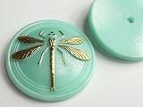 DF6845  【チェコガラス・カボション】蜻蛉・ミント色・金翅・大(3.15cm)  450円