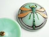 DF9641  【チェコガラスボタン】蜻蛉・エナメル彩色・薄緑・薄いオレンジ色の翅と、緑の胴体・超特大(4.05cm)  550円