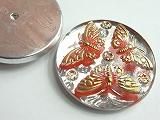 BG043301  【チェコガラスボタン】その他の虫たち・蝶と花・赤の花に金の蝶・小(2.25cm)  300円