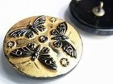 BG010390  【チェコガラスボタン】その他の虫たち・蝶三羽・黒に金地・中(2.70cm)  400円