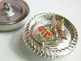 BG043302  【チェコガラスボタン】その他の虫たち・蝶と花・銀地に赤の花に金の蝶・小(2.25cm)  300円