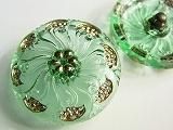 Pt06543  【チェコガラスボタン】模様いろいろ(柔らかい八弁の花)・薄緑に金・中(2.70cm)  400円