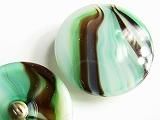 Pt09345  【チェコガラスボタン】模様いろいろ(マーブル模様)・薄緑と茶・中(2.70cm)  400円