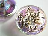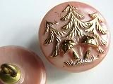 Pt49607  【チェコガラスボタン】模様いろいろ・樅の木とキノコ ・ピンクに金・小粒(1.80cm)  230円