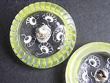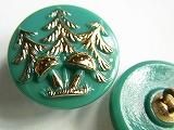 Pt49643  【チェコガラスボタン】模様いろいろ・樅の木とキノコ ・ピーコックグリーンに金・小粒(1.80cm)  230円
