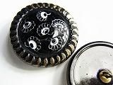 Pt62090  【チェコガラスボタン】模様いろいろ・小さな花6個 ・黒に白金・大(3.15cm)  450円