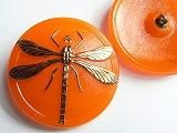 DF9303  【チェコガラスボタン】蜻蛉・カラス地・オレンジ・金翅・超特大(4.05cm)  550円  在庫 15個