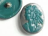 Sp1804  【チェコガラスボタン】特殊な形・カメオタイプ(濃い灰色に深緑)・縦(3.05cm)  500円  在庫 13個