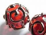 LwB5010802  【ランプワーク ビーズ】ボール型・銅色の唐草模様・透明赤・12mm  180円  在庫 14個