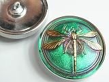 DF6018  【チェコガラスボタン】蜻蛉・虹色・緑紫・金翅・大(3.15cm)  450円  在庫 14個