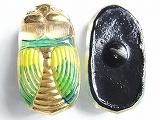 BG100345  【チェコガラスボタン】その他の虫たち・せみ・緑と黄色・中型(長さ:2.70cm)  400円  在庫 15個