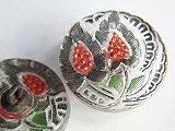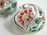 FLfbd13302  【チェコガラスボタン】花いろいろ・花とつぼみ・無色透明に赤緑銀・小(2.25cm)  300円