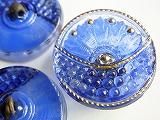 PtPC3330  【チェコガラスボタン】フラワー・バスケット・青と紺と金・小(2.25cm)  300円