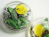 TL6362  【チェコガラスボタン】チューリップ・透明に黄と緑・大(3.15cm)  450円
