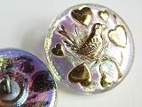 BD053086  【チェコガラスボタン】小鳥とハート・無色透明虹色に金・小(2.25cm)  300円