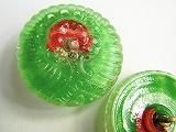 Pt00840  【チェコガラスボタン】羽に囲まれた花・緑と赤・中(2.70cm)  400円