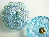 Pt32835  【チェコガラスボタン】模様いろいろ・折重なったペイズリー(空色)・小(2.25cm)  300円