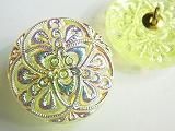Pt34060  【チェコガラスボタン】模様いろいろ・三つの輪(レモンイエロー・虹色)・小(2.25cm)  300円